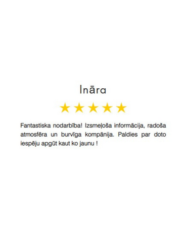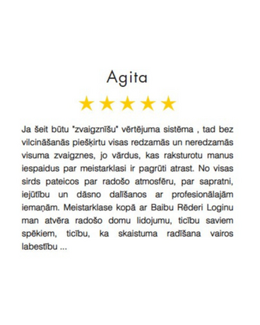 Has led master classes in Latvia and abroad in the nuno felting technique (created the Woocoon brand. ( woocoon.com ) Silk and merino wool garments)
